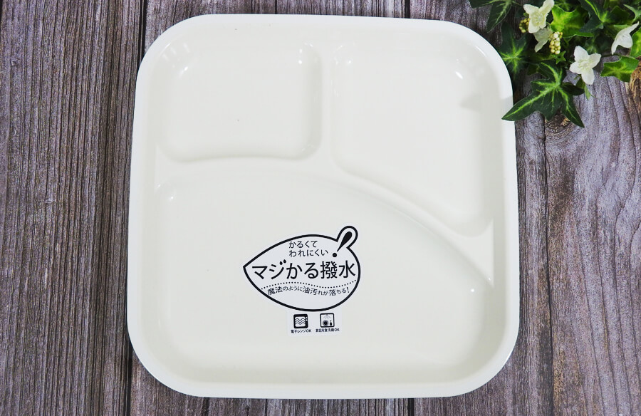 特殊加工されているとのことで、デリケートなランチプレートなのかと思いきや、「電子レンジと食器洗浄機OK」という文字が……!これは助かります。