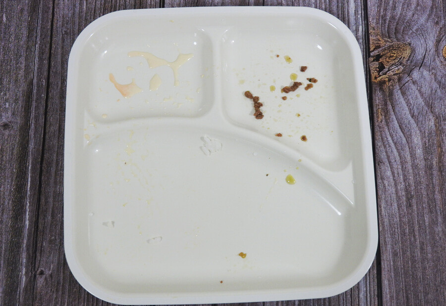 上の写真は娘の食べ残しを写したもの。油が浮いてますね。油汚れが落ちやすそうです!