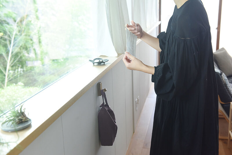 「新しいマスク収納は、吊るせて、洗えて、ナチュラルでかわいい。