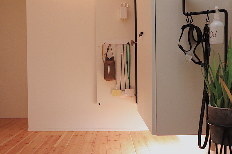 内扉なら目立たず、お出かけ前に必ず開ける導線として、最適なストック場所に。