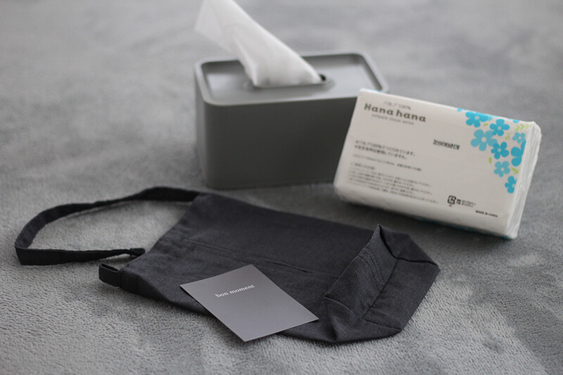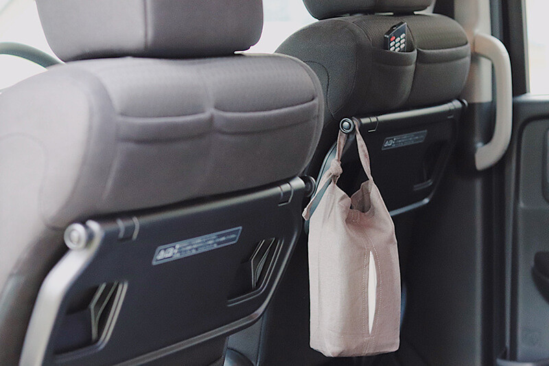 車でのマスク忘れの防止にも活躍。そして、いろんなところで試した結果、ティッシュケース として使うことにしたんだそうです◎。