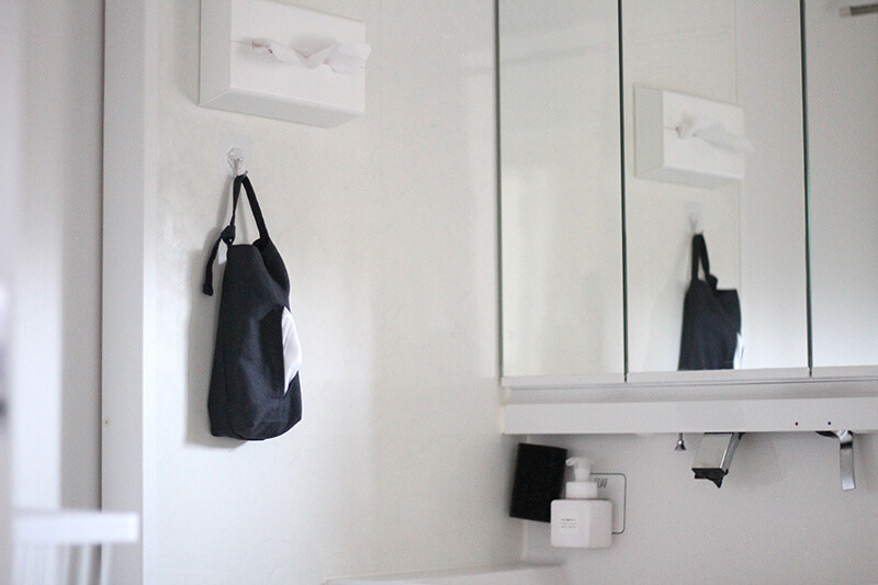 ひっかける場所があればどこにでも設置が可能。玄関やサニタリールームなどお出かけ最後の目に入る場所にストックしておくことができます。