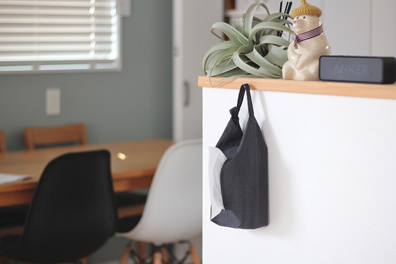 「いろんなところで試した結果、我が家ではティッシュケース として使うことにしました。(パックティッシュにぴったり!)