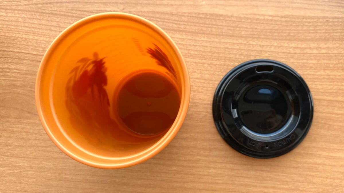 なお、リユーザブルカップは、フタに空いている穴を閉じることはできません。完全密閉することはできないので、取り扱いには注意してください。