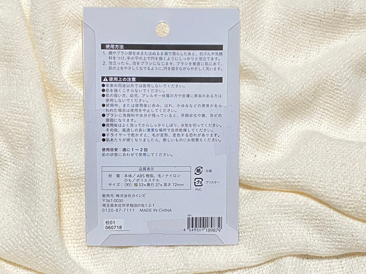 - カインズ「なめらか洗顔ブラシ ホワイト 498円(税込)」