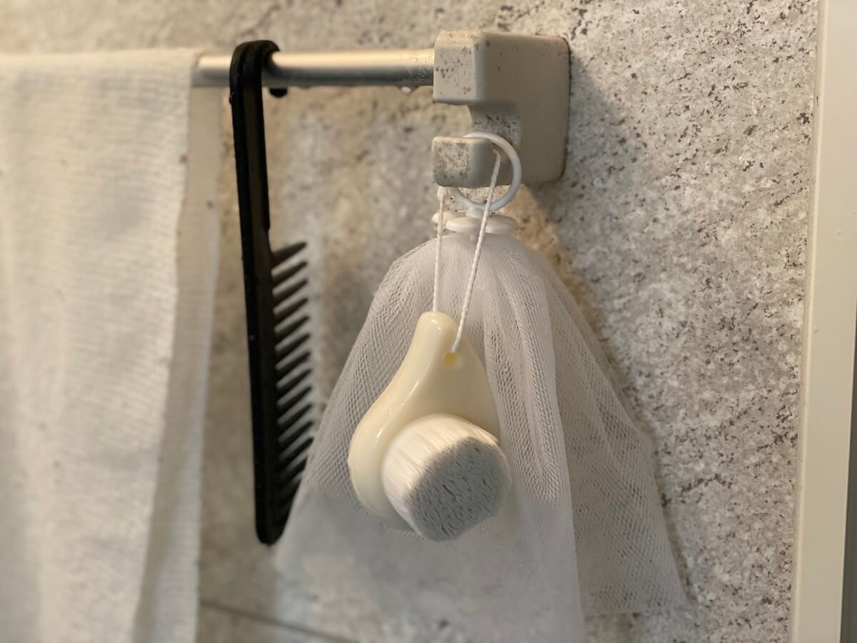 私は洗顔ネットと一緒に、タオルハンガーにかけて収納しているので、泡立て→ブラシと一連の動作として使っています。