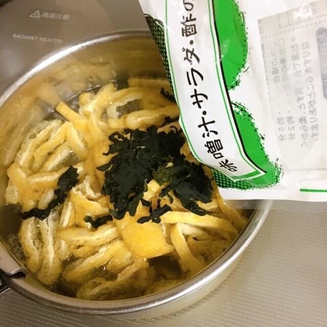 レシピ(2)包丁いらずの油揚げとわかめの味噌汁