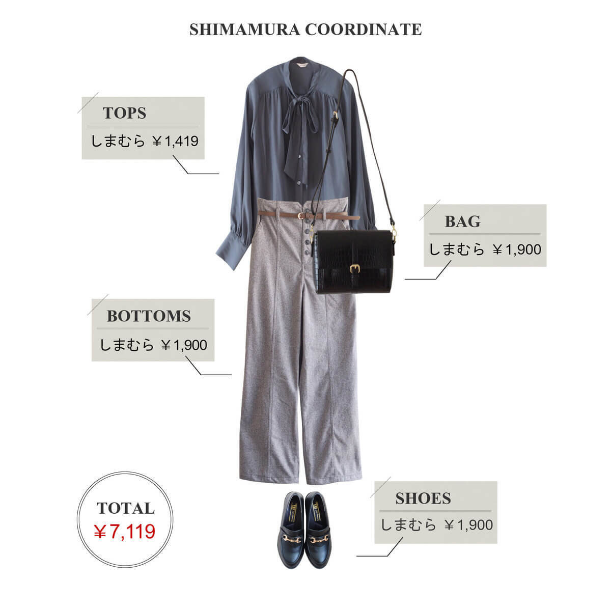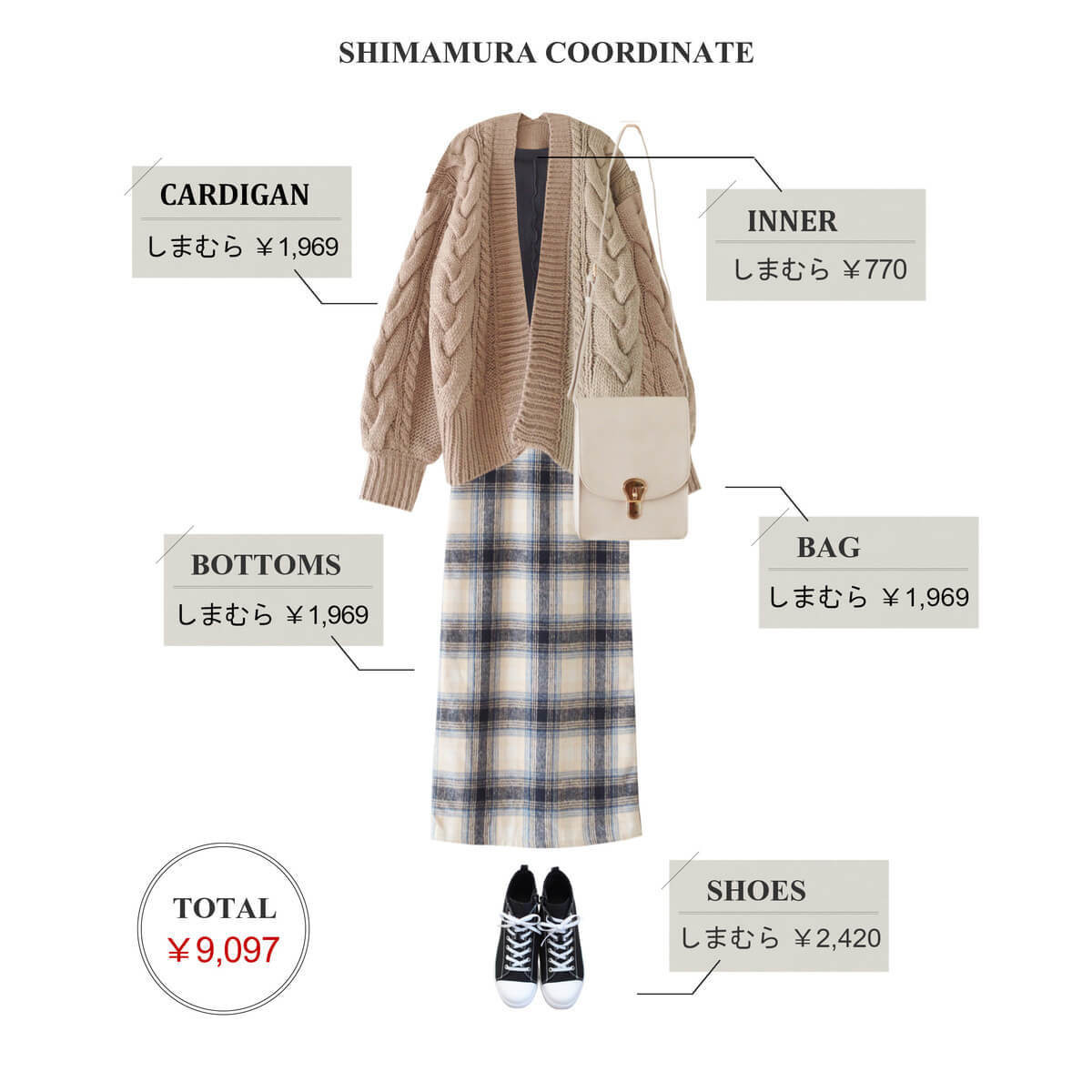 全身2,000円以下アイテムだけ!きちんと感のある大人シックな着こなし