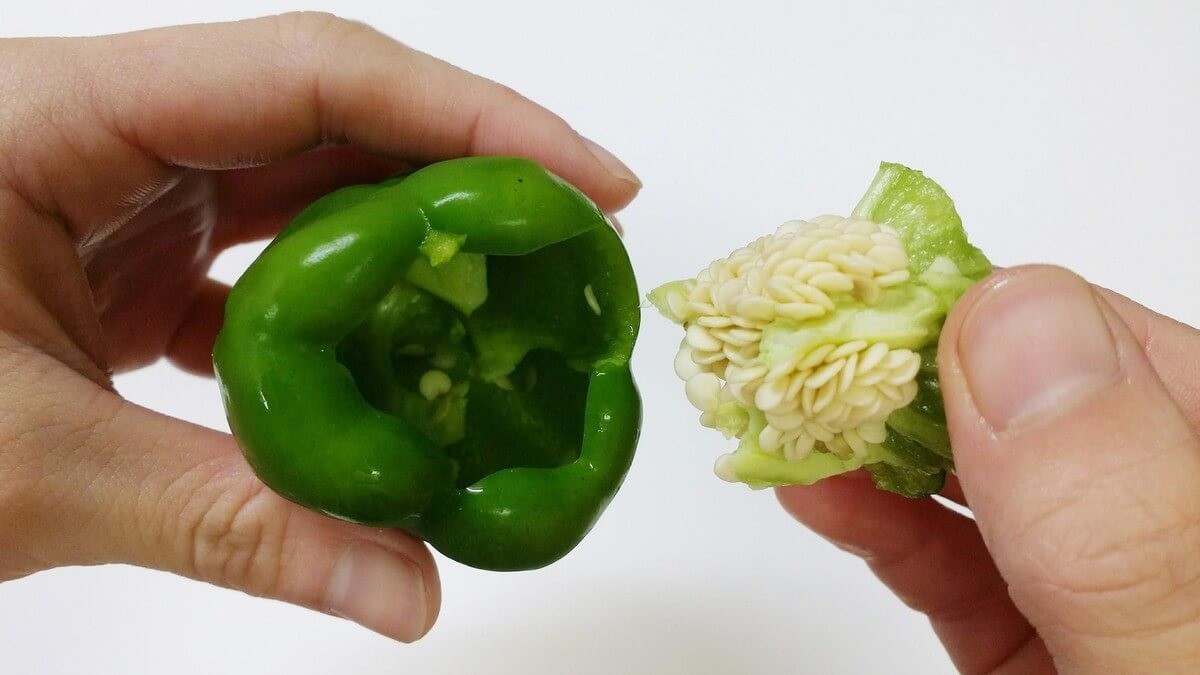 【ピーマンのタネ】散らばる問題を解消!包丁・まな板いらずで超時短♡簡単に取り除くテク