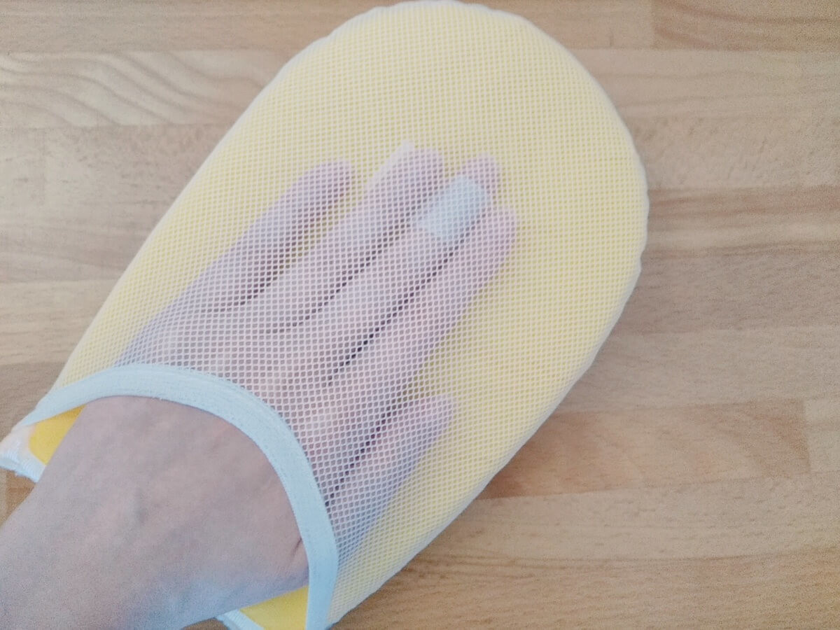 手を入れる裏面はメッシュ素材で、蒸れが防げる仕組み。これなら夏でも汗びっしょりにならずに済みそうです。