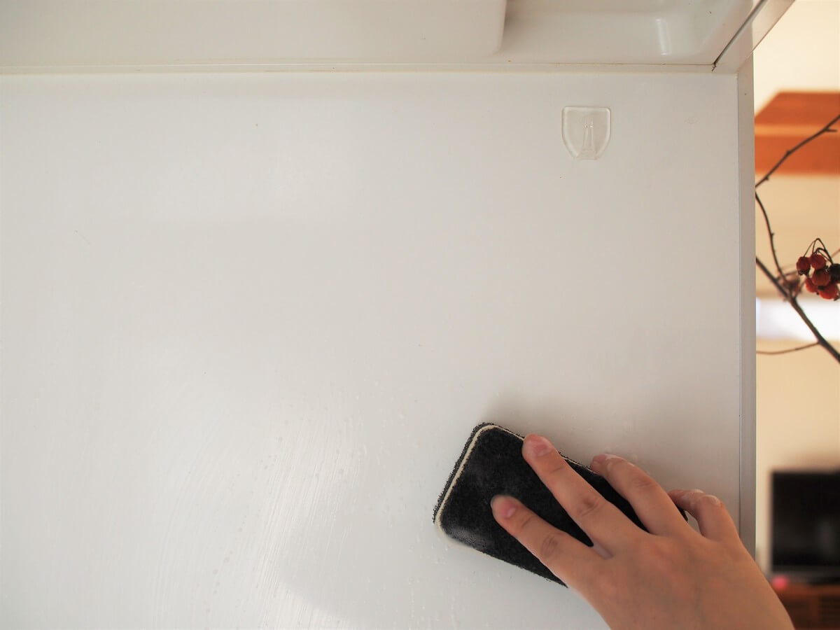 あまり強くごしごしすると、隙間に緩衝材があると出てきてしまう恐れがあるので、優しく擦りましょう。