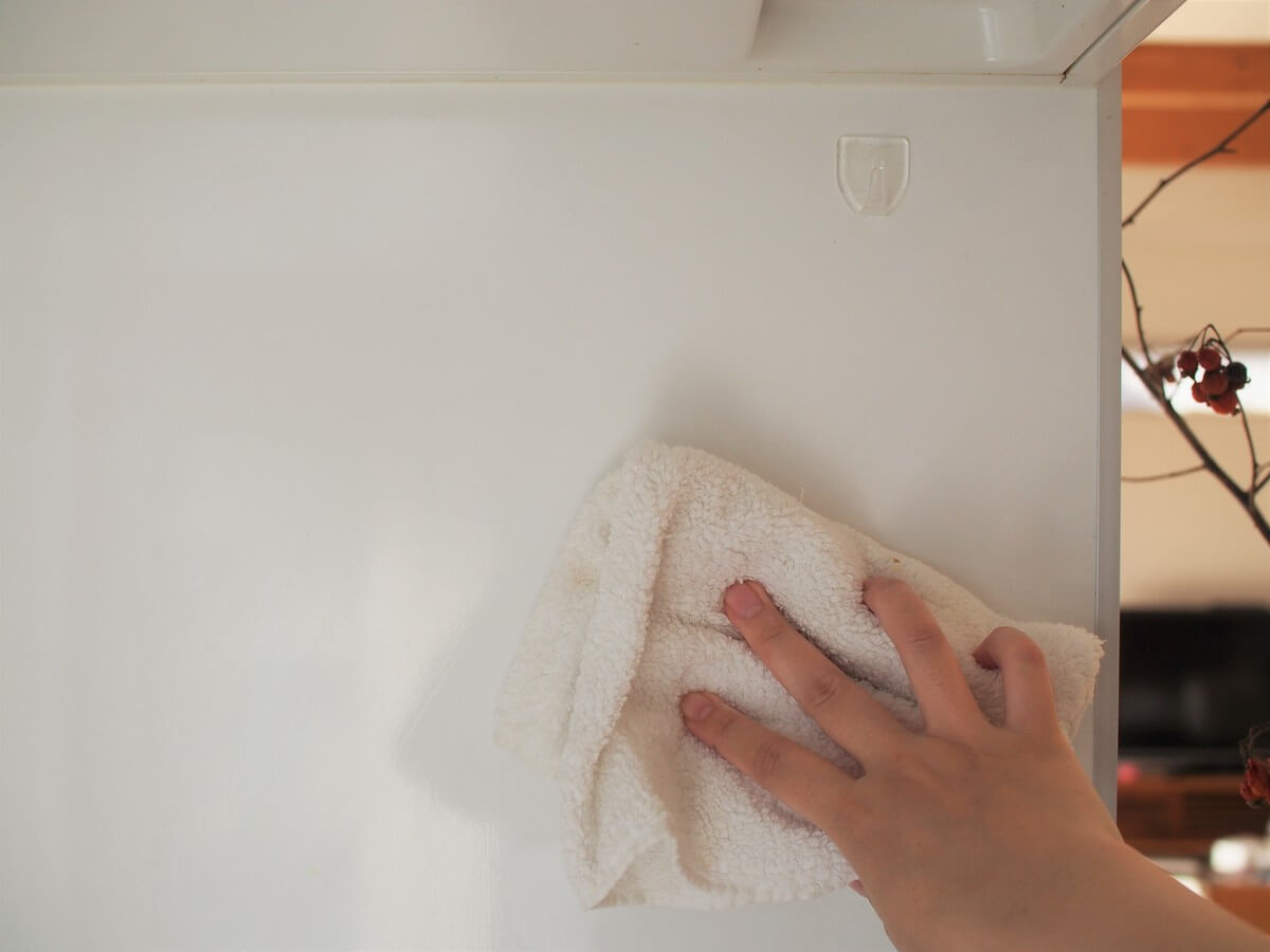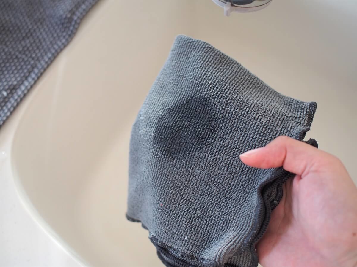 仕上げに、マイクロファイバークロスなどに少しだけ水分を含ませて拭きます。