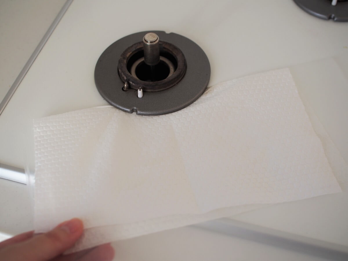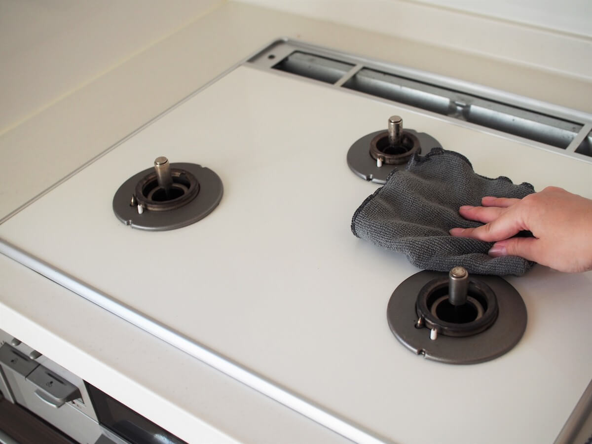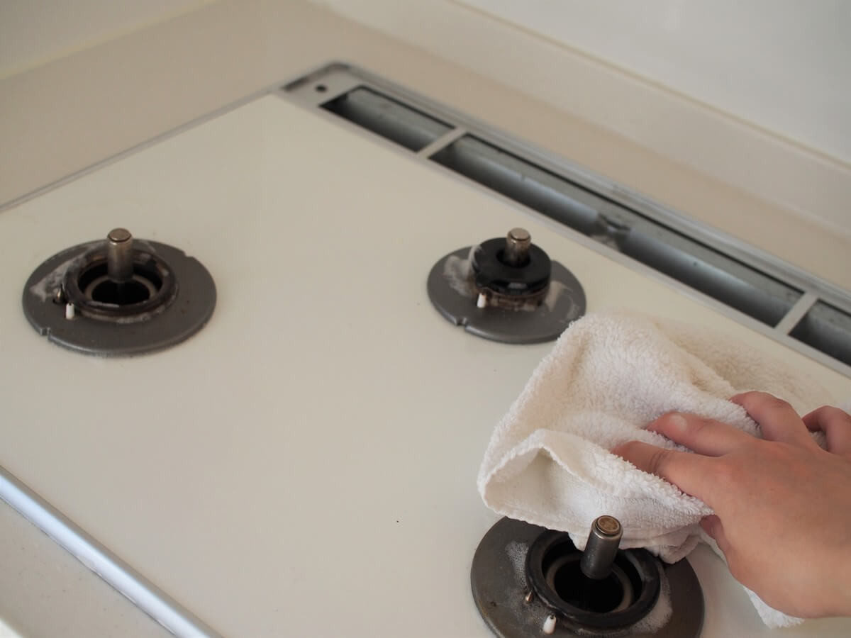【ガスコンロ掃除の仕上げ】固く絞った柔らかい布で拭き上げる