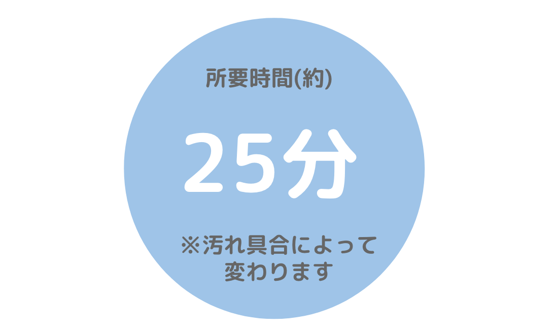 ガスコンロのしっかり掃除にかかる時間は、約25分です。