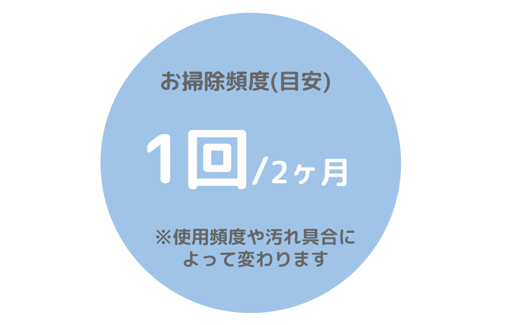 ガスコンロのしっかり掃除の目安は、1回/2ヶ月程度。ですが、日頃からこまめに掃除したほうがラクです。