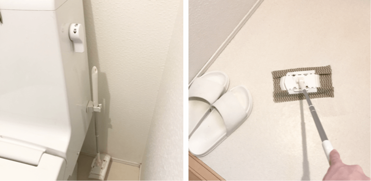 @rinko5511さんが、ずっと探していて出会ったのが「トイレ床用ワイパー」。柄が伸縮し、360度回転ヘッドという便利な形状で、トイレ空間の隅々まで掃除ができるようになっています。