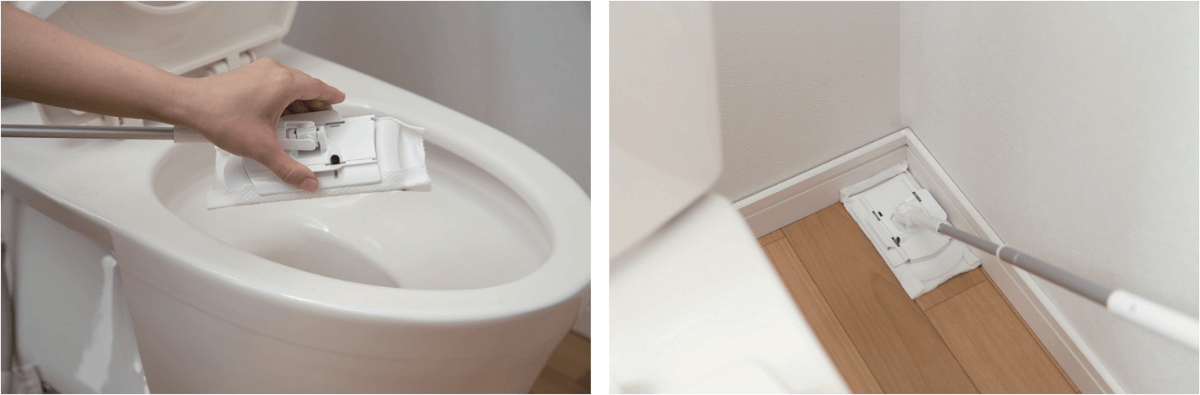 フローリング用のワイパーはたくさんありますが、トイレ用のコンパクトなワイパーはレア。手持ちのトイレ掃除用シートが使えて便利です。