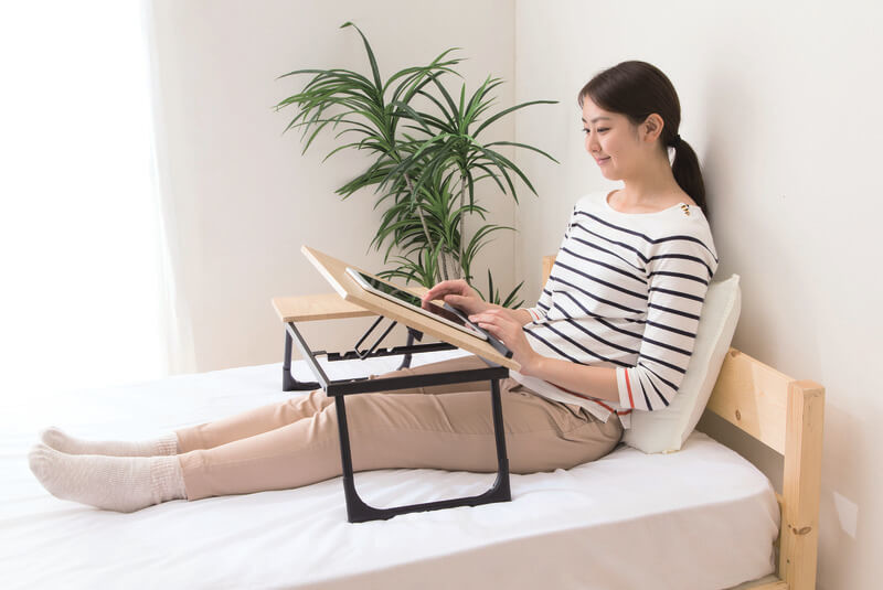 テーブル角度4段階調節で、おうちでの場所を問わず、リモートワークに最適です。座卓でも、ソファでの仕事にもからだにフィットして実用的なアイテム。