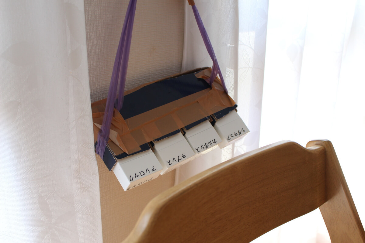 ダイニングテーブル付近に、工作とコラボして薬マシーンが完成しました!
