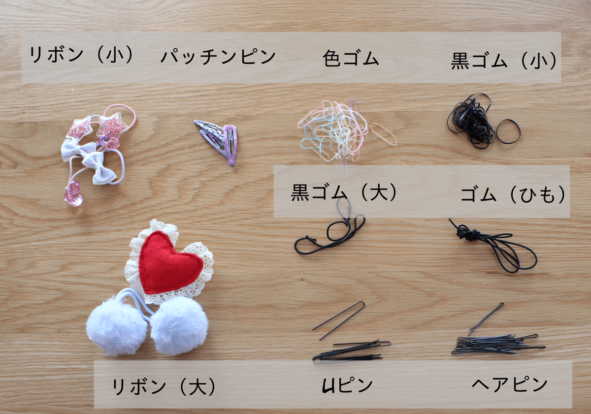 わが家のヘアアレンジで使うアイテムは、大きく9種類。