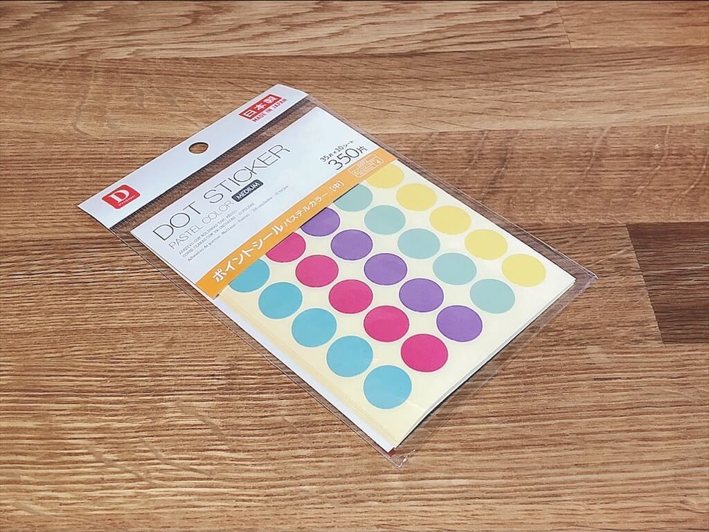 そこで、ダイソーの「ポイントシール(パステルカラー)」に用途を書いてフタ部分に貼っています。