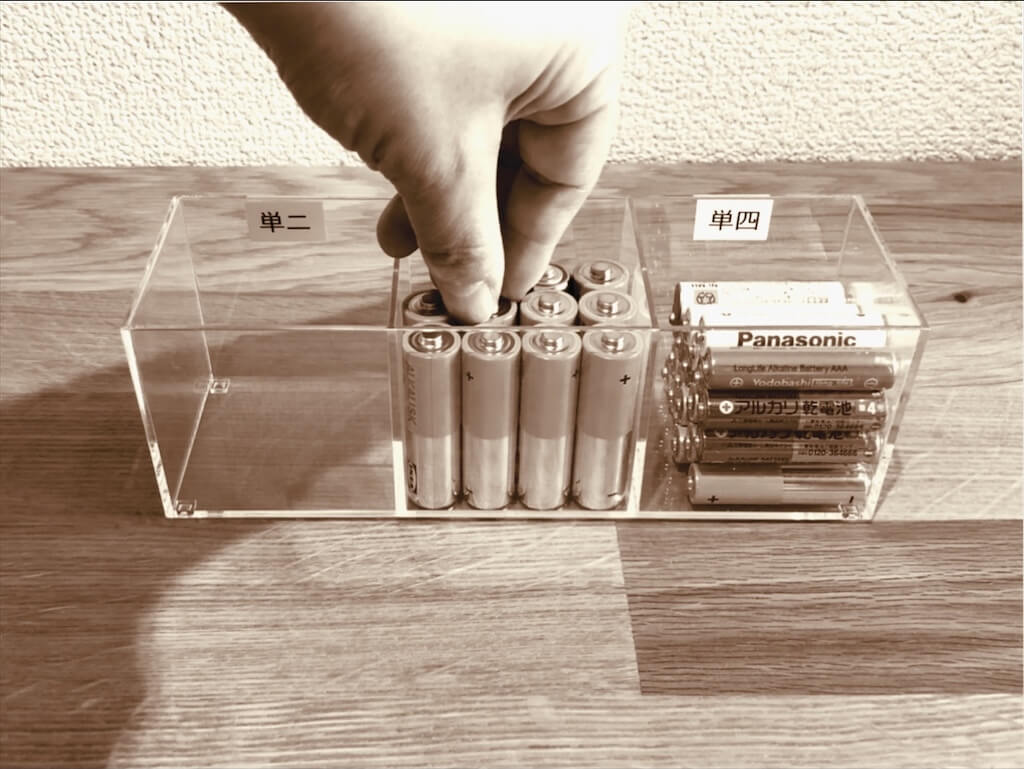 引き出しのなかに電池をひとまとまりに収納していたときに、主人に「単3電池と単4電池が、それぞれあとどのくらい残っているのかがわかりづらい」と言われたことがありました。