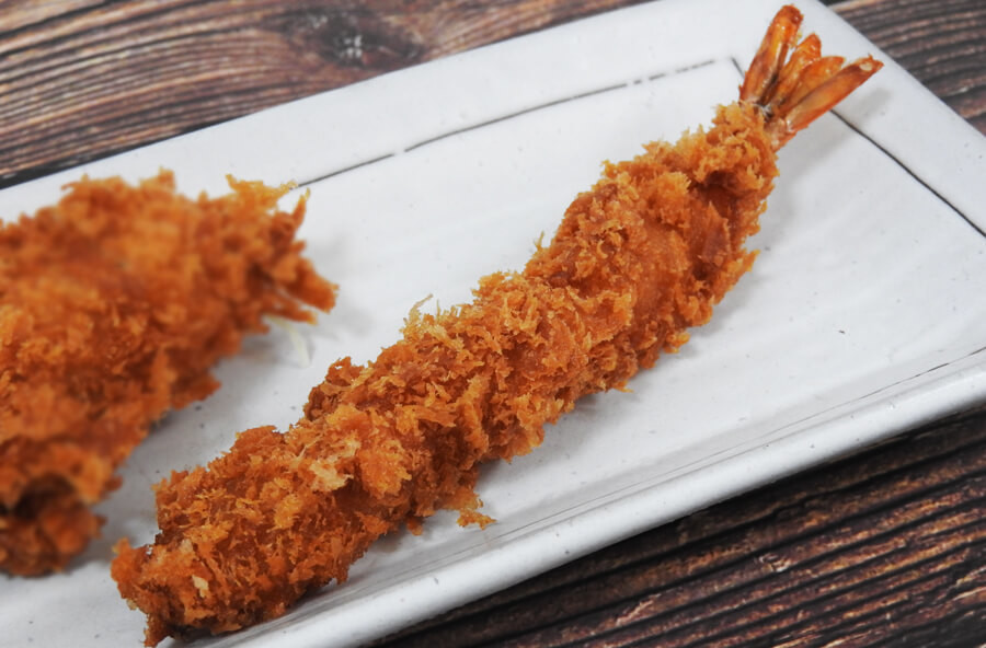 海老フライはわりと長め。お皿にうつしてみましたが、思ったよりも大きいと感じました。