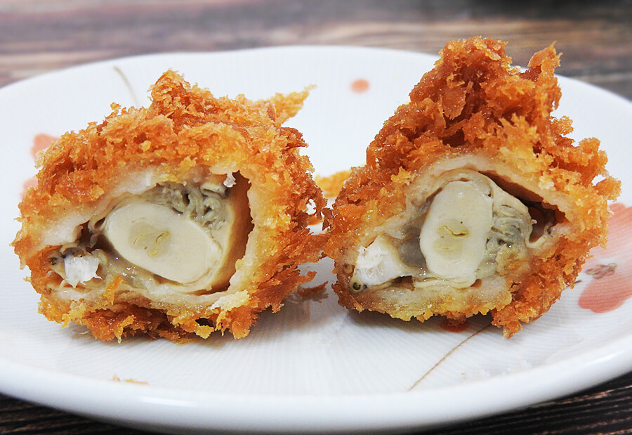 カキフライを半分に切ってみたところ、カキの身がずっしりと入っていてびっくり。口の中に入れてみると、想像よりもぷりぷりしていることに驚きました。また、私はカキの身にある黒っぽい部分が苦手なのですが、ほぼ臭みを感じることなく完食。