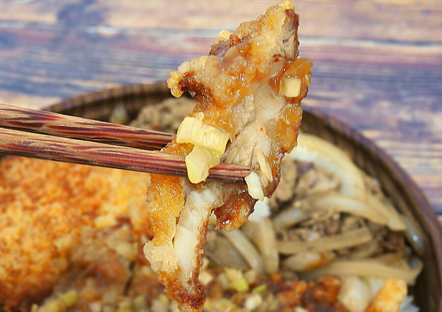 ネギがたっぷりとのった油淋鶏。キッチンオリジンやオリジン弁当のおかずメニューの中でも好きですが、肉トリプル丼でトッピングされているネギ油淋鶏も素晴らしい仕上がり。