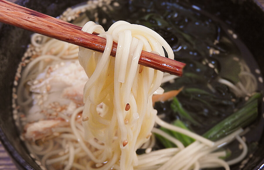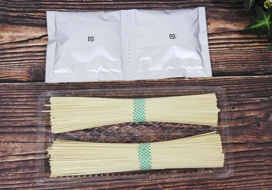 棒タイプの麺とスープが入っています。食べる時には具材を用意しましょう。魚介系スープですので、わかめやねぎとの相性が良さそうですよ。
