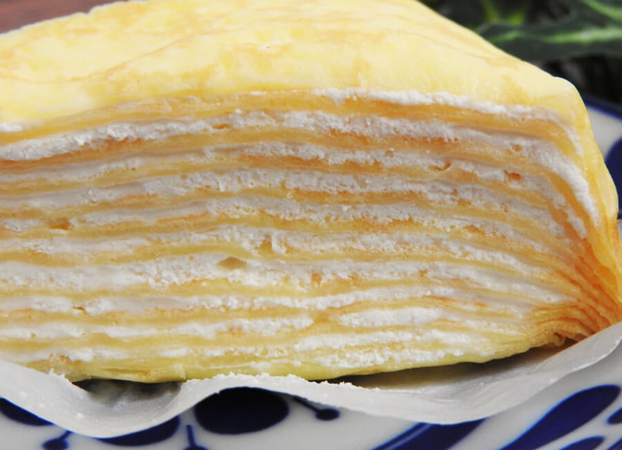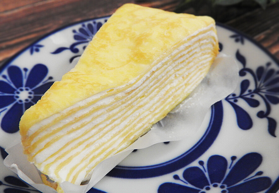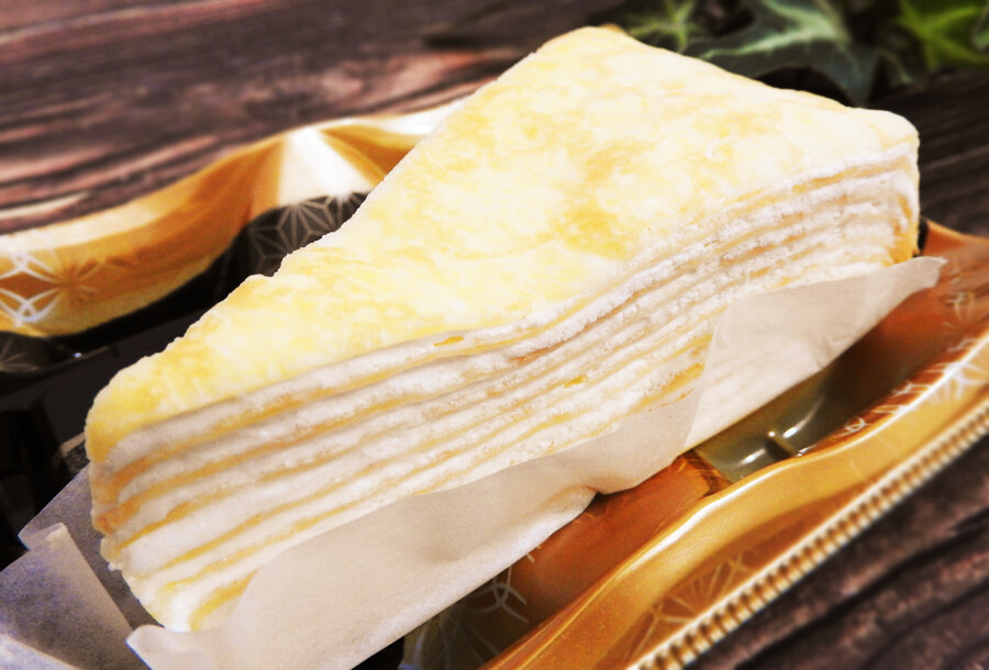 なぜかミルクレープの中央部分がへこんでしまいました。持ち帰り時に崩れてしまったのかもしれません。お持ち帰りする時は、衝撃に気をつけながら持ち運びした方がよさそうですね。