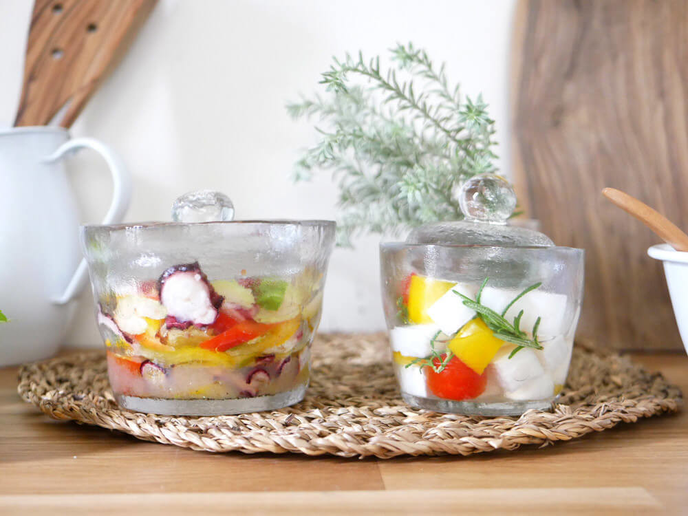 浅漬けを作らないときには、サラダやフルーツなどをちょっと添える、ガラスの器としても◎。