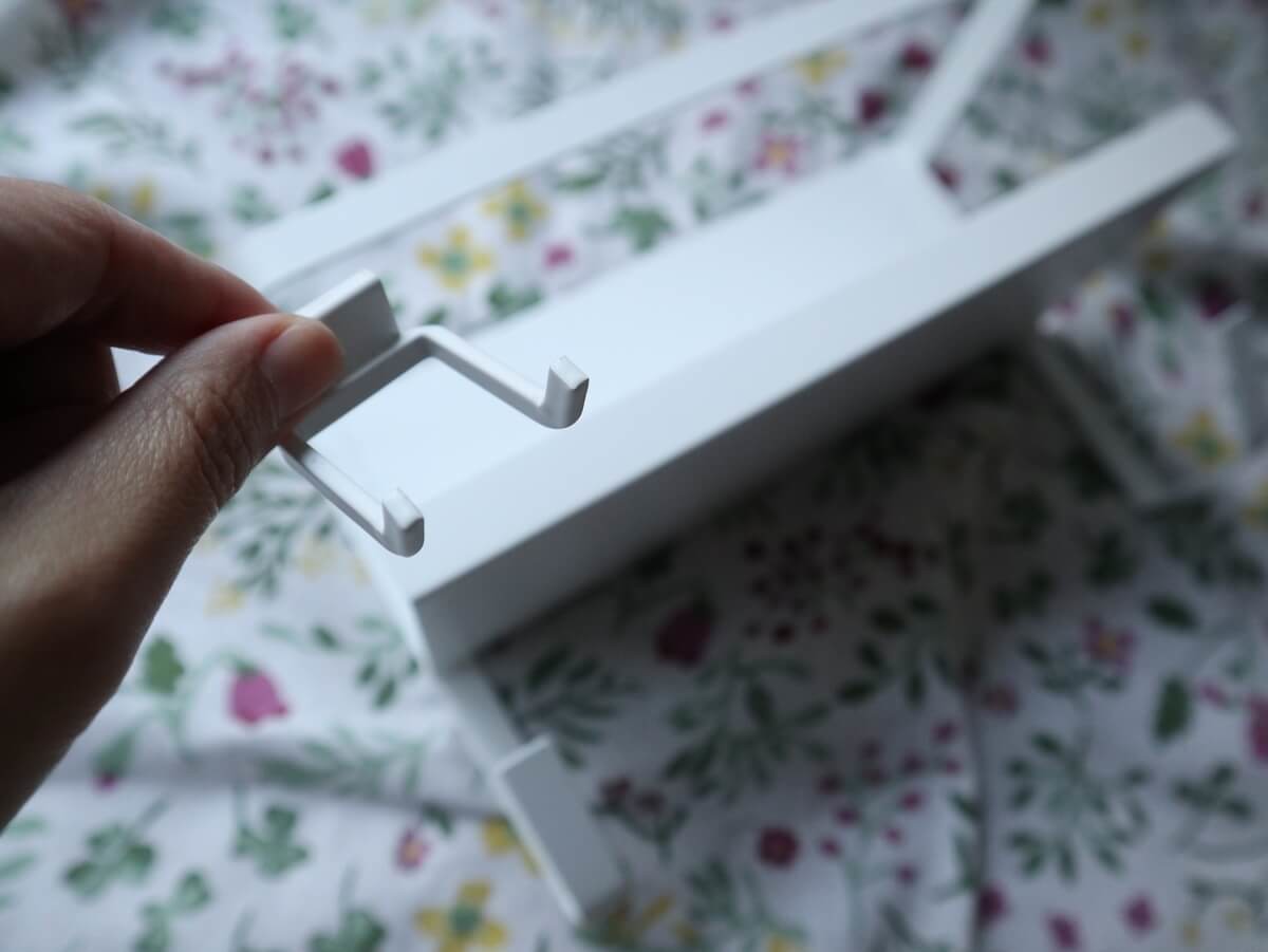 これまでは、狭い隙間に手を伸ばして引っかけていたんですがこれが結構面倒で!引っかけるのが億劫になっていました。