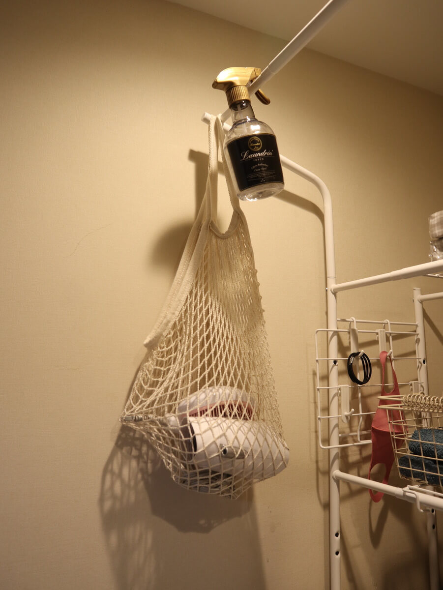 消臭剤を引っかけたり、ネットバッグにはドライヤーやブラシを入れています。