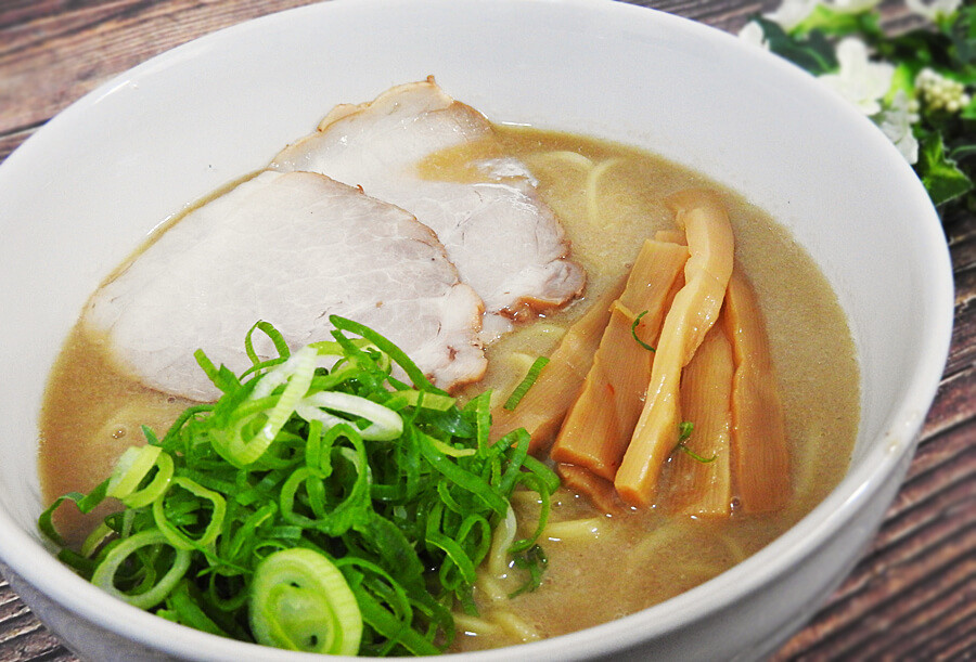 入っていた具材(メンマ・ねぎ・チャーシュー)をのせて完成しました。ラーメンスープがドロンドロンなのは、ラーメン鉢に入れている最中でもわかりました。店舗で食べるラーメンスープに近づいているのでしょうか。