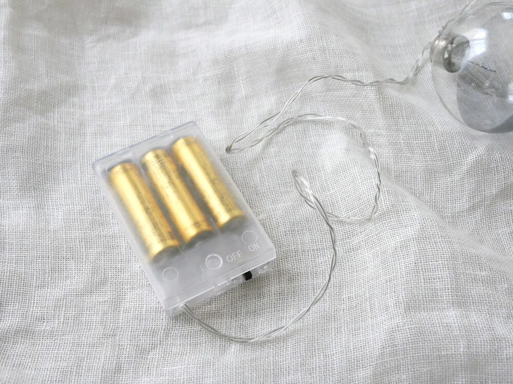 ボールから電池ボックスまでのコードの長さは約50cmと長めなので、上手に電池ボックスは隠しつつ飾ることができますね。