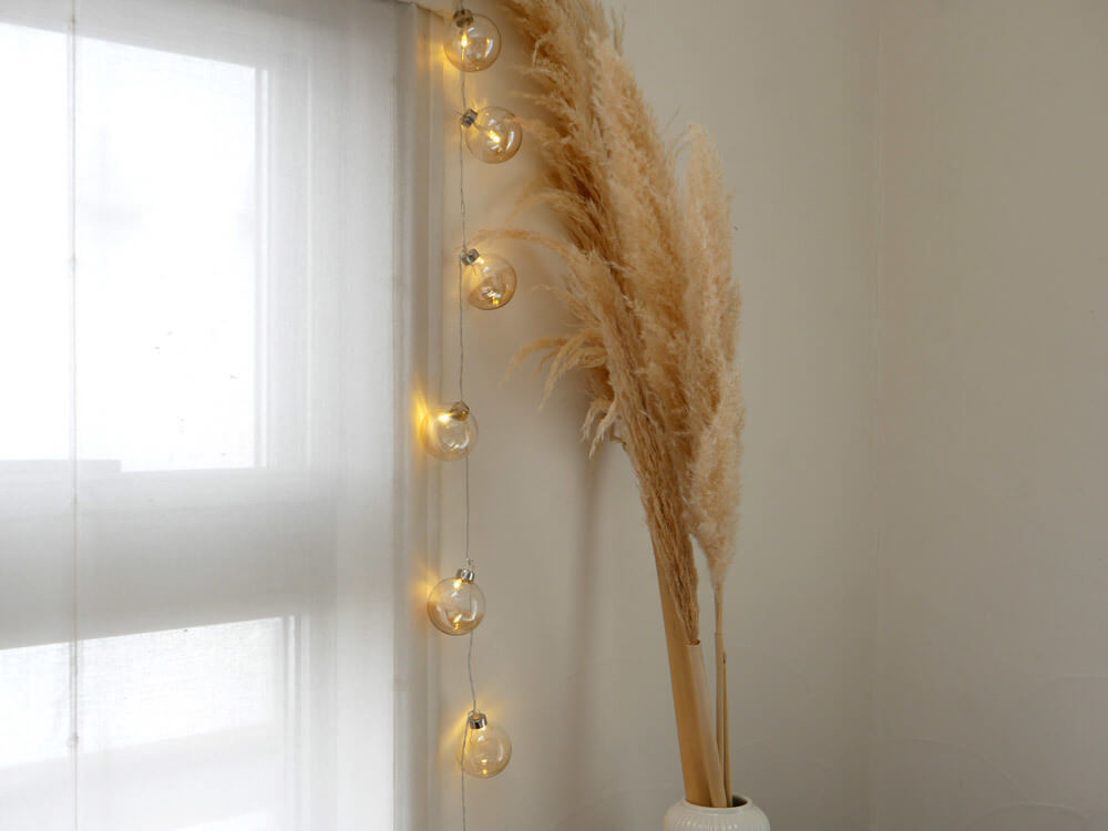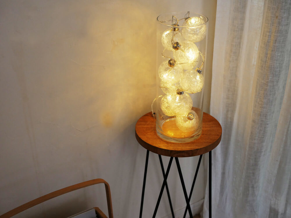 コロンとした可愛らしいボールライトは、縦にただ垂らすだけでもアクセントになり、華やかな光は一気にムードある空間にしてくれるのでおすすめです。