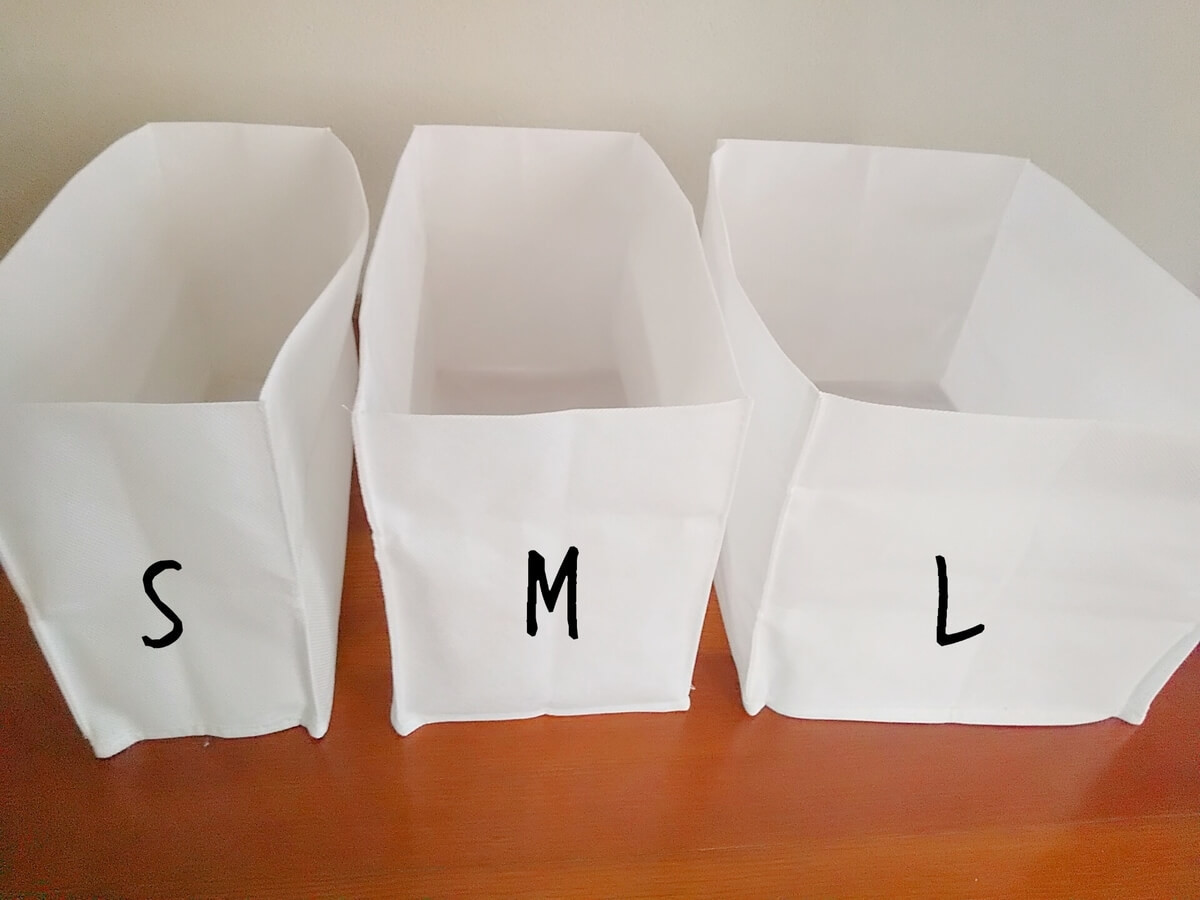 一番大きいLサイズの幅は約22cm。A4のコピー用紙より一回り大きいサイズです。