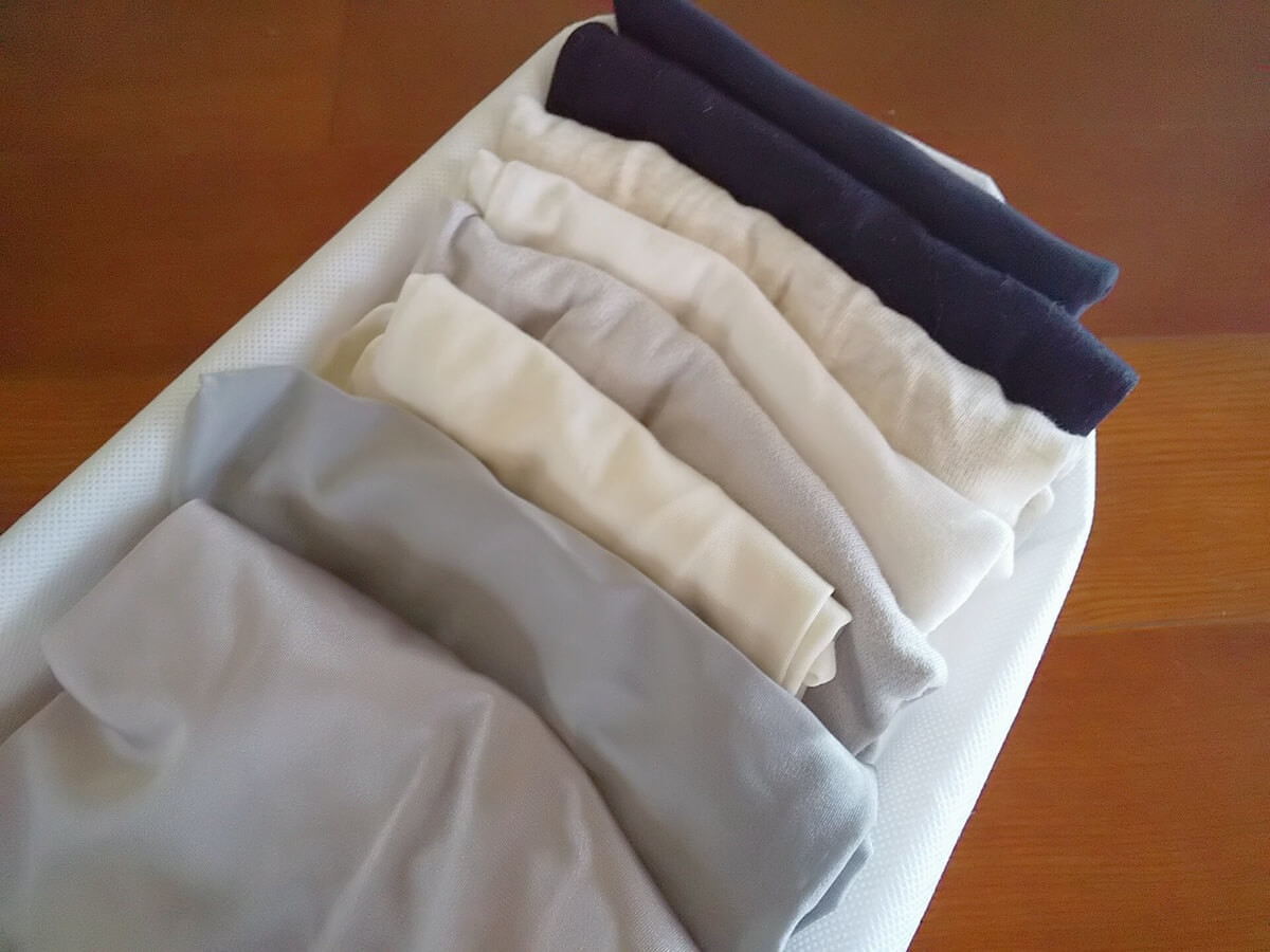 Mサイズの幅は約15cm。 キャミソールやタンクトップなどの下着類の収納に向いているサイズです。