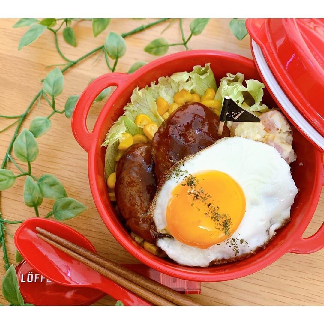 お弁当にハンバーグが入っていると気分が上がりますよね。@17___sk_さんのお弁当は、カフェランチ気分になれるロコモコ丼です!