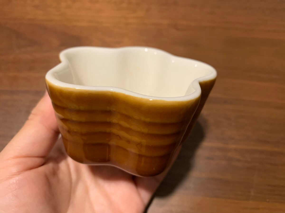 中でも私が気に入って購入したのは、ダイソーの茶色いフラワー型のココットです。ルクルーゼっぽい見た目もポイントです。