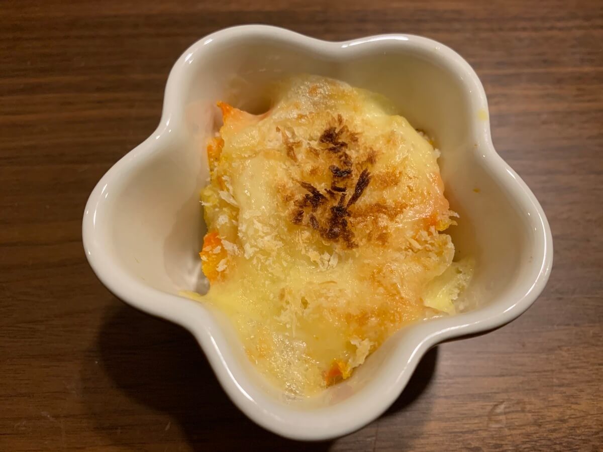 作り置きしてあったポテトサラダをココットに入れ、チーズとパン粉を振りかけてグリルで数分加熱。アツアツのスコップコロッケの完成です。冬はやはり温かい料理が体に染みます。