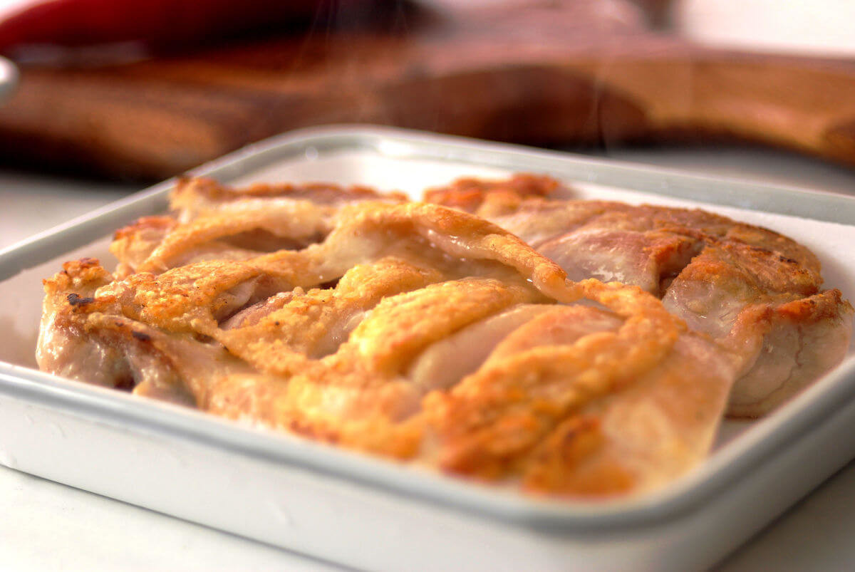 皮に焼き色がついたら、にんにくとお肉を一度バットにあげておきます。
