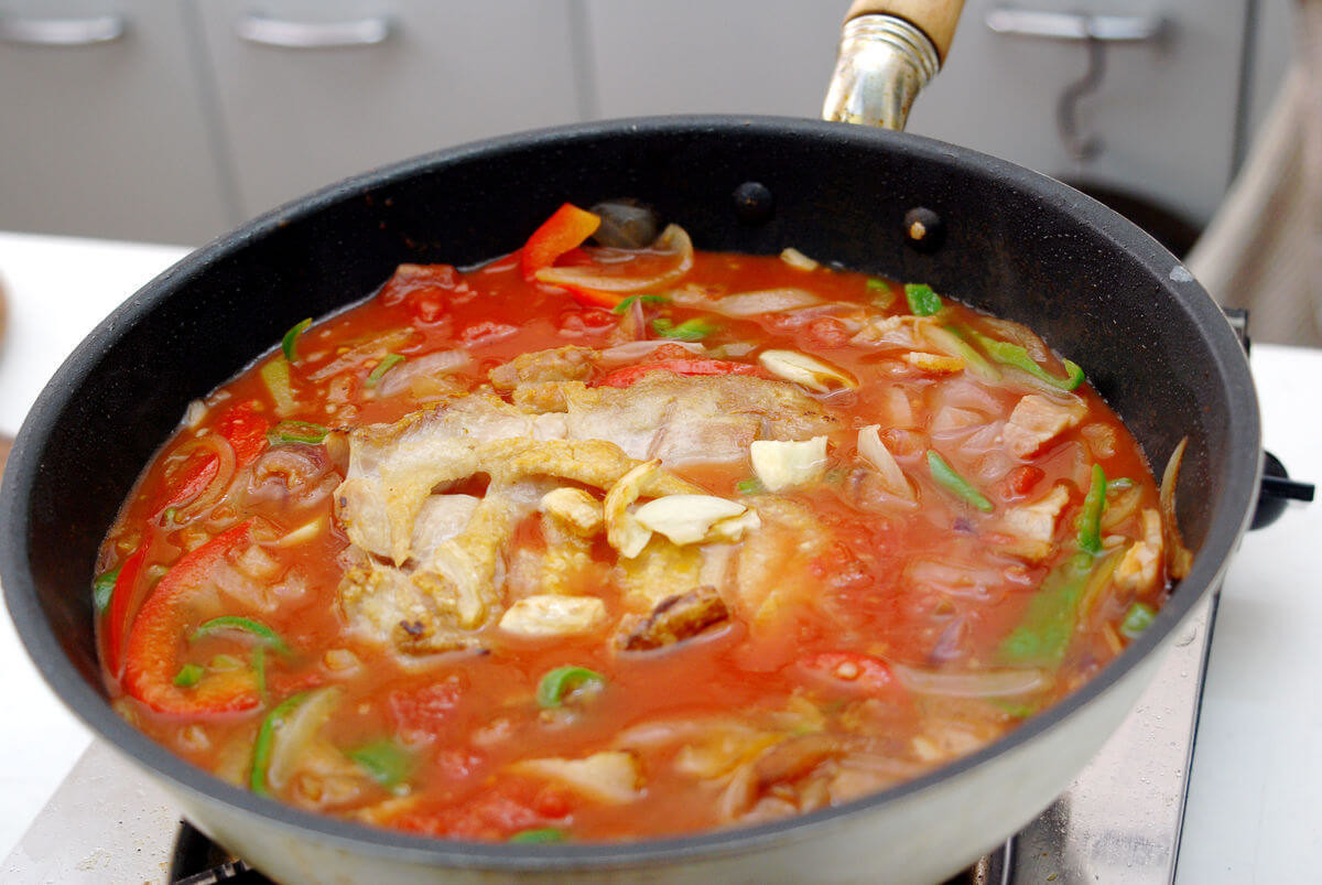 今回ご紹介するレシピは、プレ・バスケーズというフランス料理。日本語に訳すと「鶏肉のバスク風(煮込み)」という意味です。その名の通り鶏肉をさまざまな野菜とともにトマトで煮込むのですが、辛みを効かせるのがポイント。