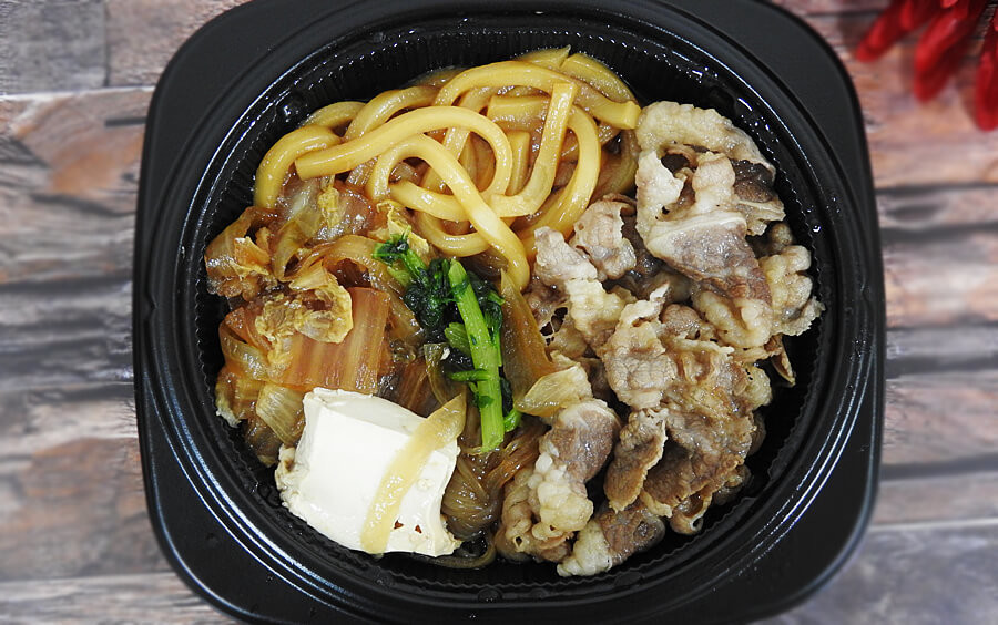 特製の醤油だれで煮込んだ牛すき鍋です。ワンコイン以下とお手頃価格でしたので、勢いで買ってしまいました。ごはんは付いていませんので注意。