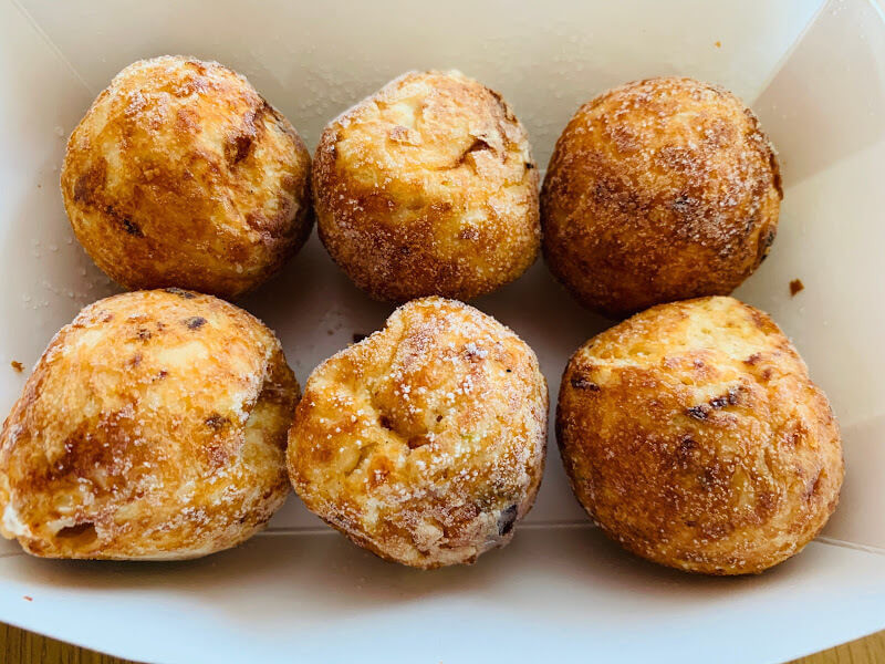中は外ほどの色は付いていませんが、ほんのりと味が付いているような気がします。むしろ中まで全部同じ味だったら飽きちゃうかも。外のカリッと感と中のモチっと感の食感の違いが楽しいです。