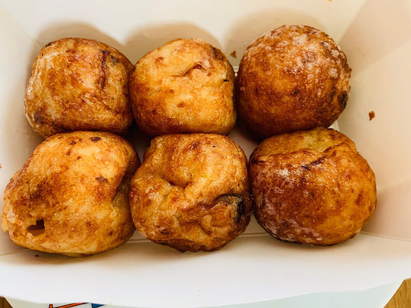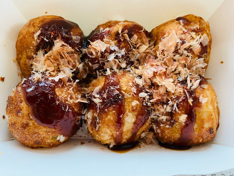 外はカリっと、中はアツアツトロトロなのでやけどしないように気を付けてください。当然ですが、タコもちゃーんと入っていますよ♪空腹時の粉もの最高!!