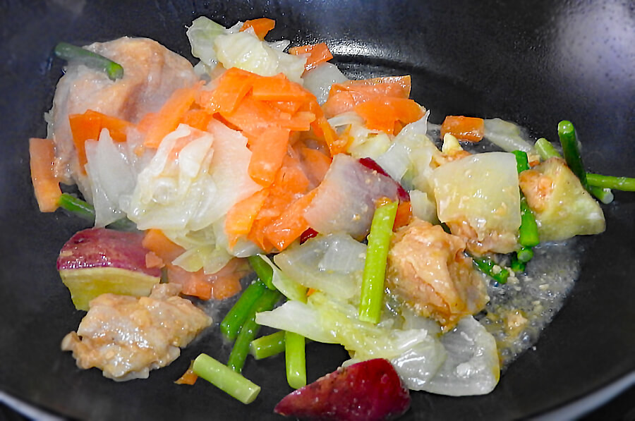 あらかじめ下ごしらえ済なので、さつまいもが柔らかくてホックホク。赤く染まっていたのでちょっと辛いのかなと想像していましたが、辛さはほぼなし。5歳や3歳の子ども達は「辛い」ということなく、食べていました。