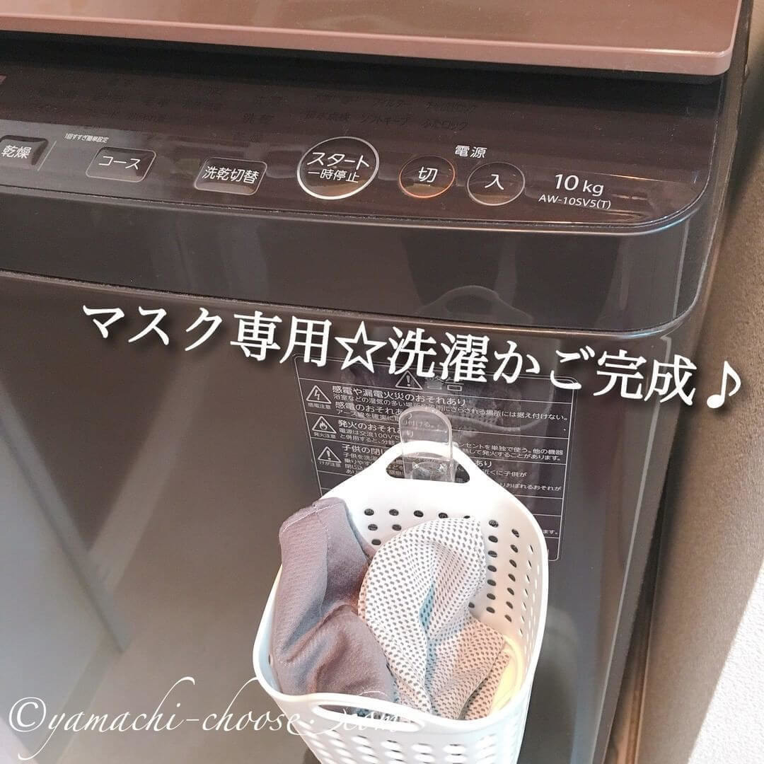 この時期にぴったりなのがマスク用の洗濯カゴの設置です!フィルムフックとコンパクトカゴを組み合わせれば、マスク入れに早変わり♪