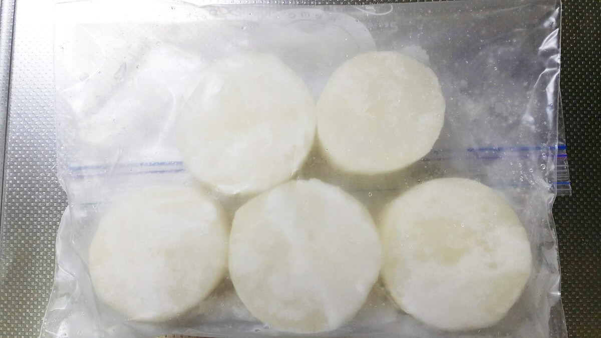 大根はなるべく平らに入れ、空気を抜いて冷凍室に寝かせるように入れます。